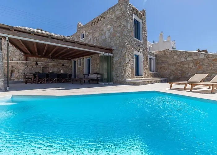 Der Flughafen Mykonos ist in 10 Autominuten zu erreichen, und Naturattraktionen wie die der Strand von Agios Stefanos sind etwa 4 Kilometer von. Die Villa liegt etwa 30 Gehminuten von der Panagia-Paraportiani-Kirche.